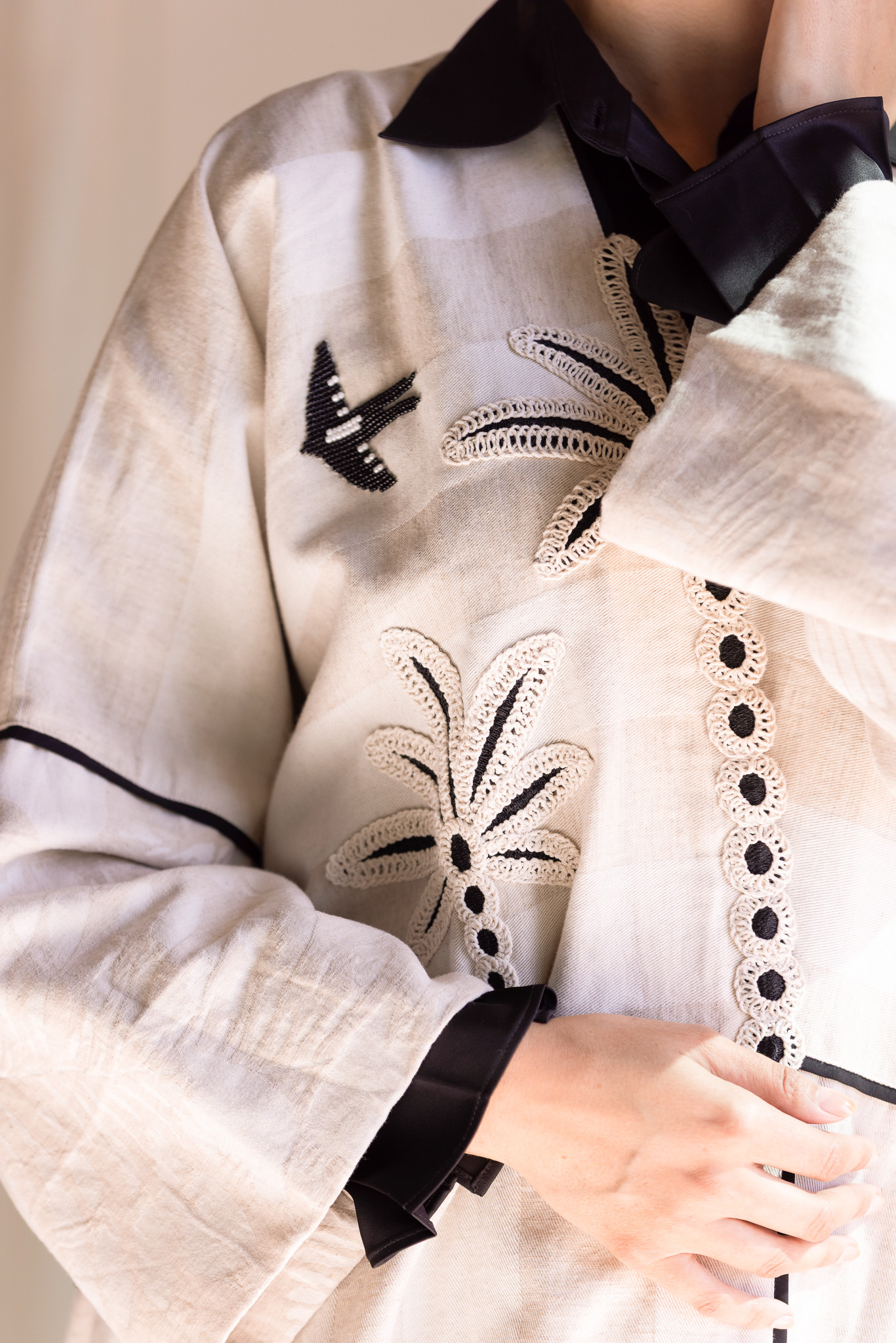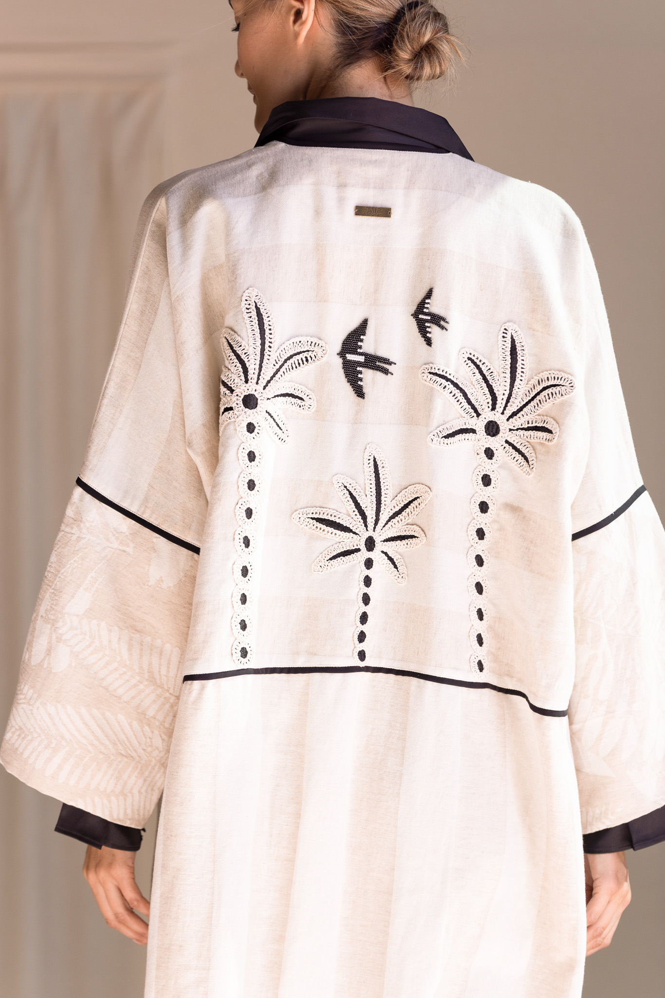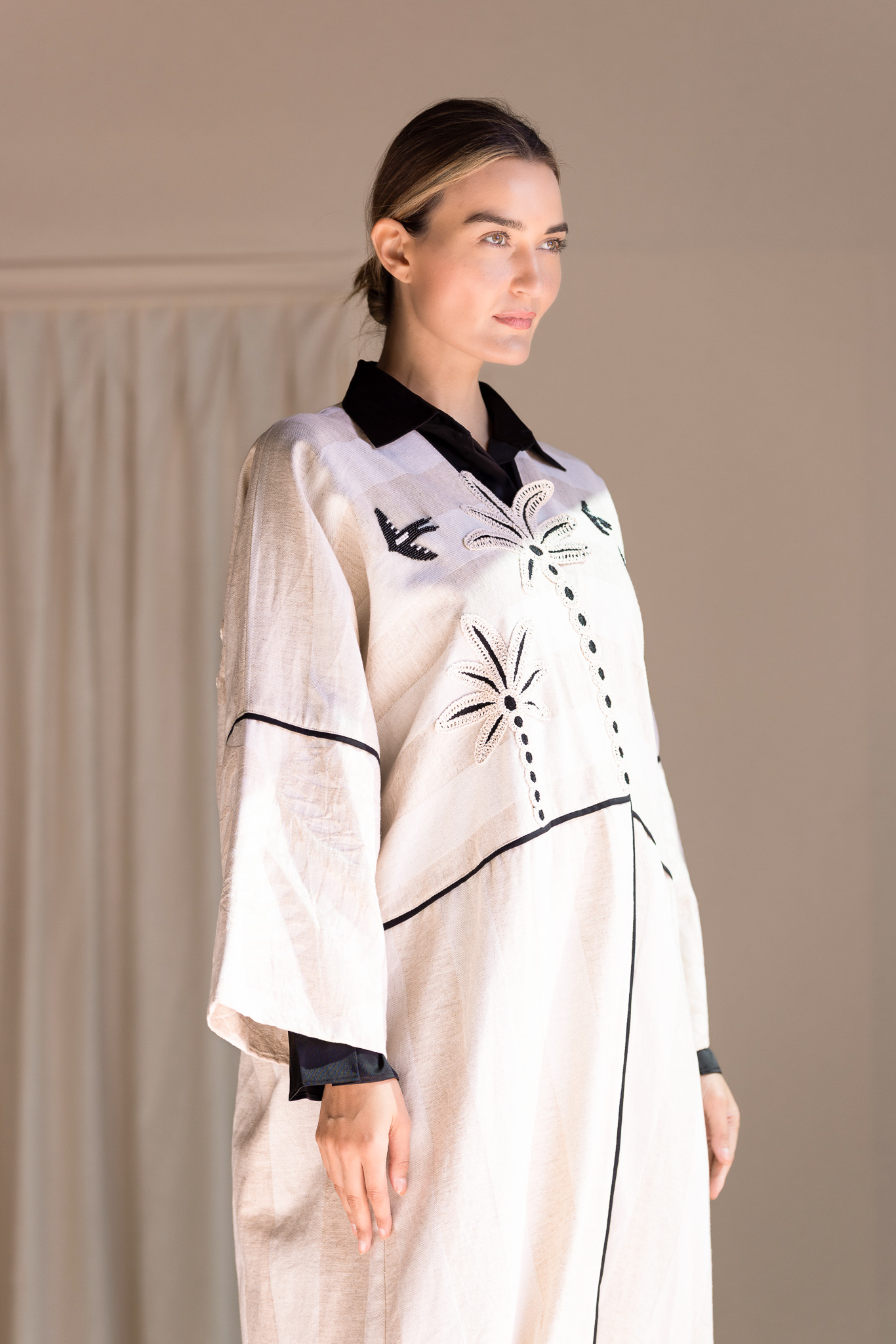 Organic thick cottot abaya with hand stitching, and delicate bead embellishments